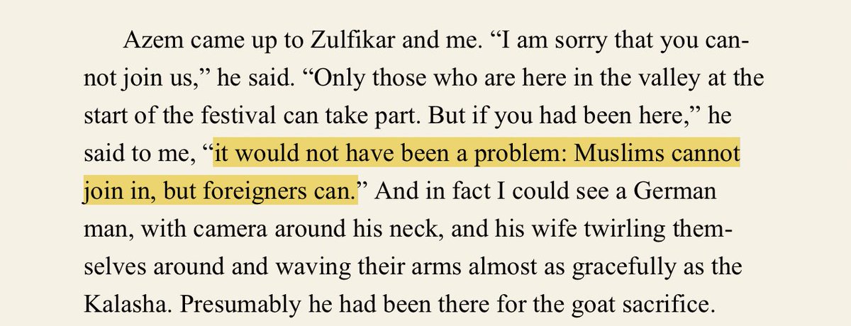 This dislike of only Muslims as being especially ritually impure seems to have continued to date in the modern-day Kalasha Indo-Aryan people of Chitral.